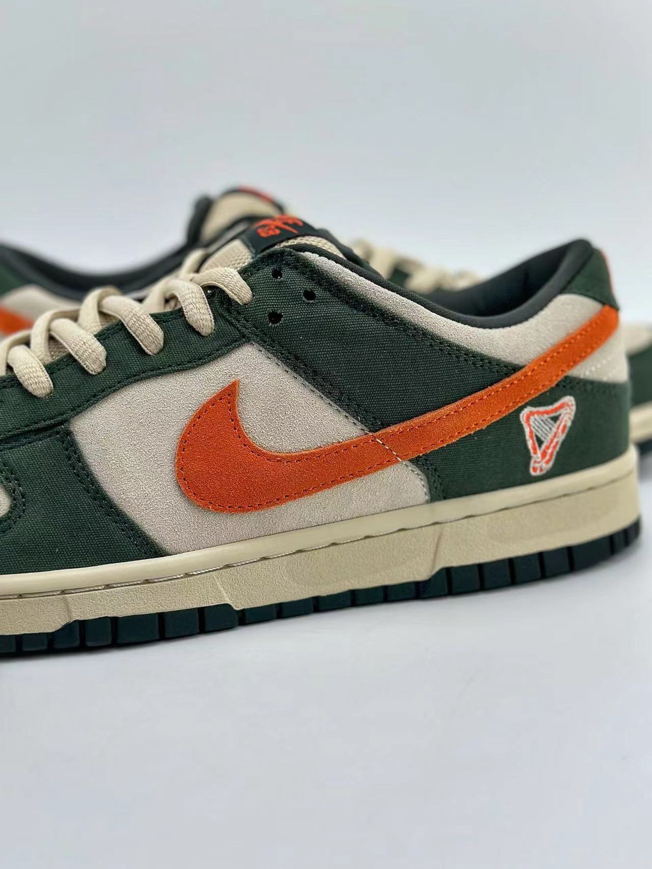 The Nike SB Dunk Low Eire is a standout sneaker released in April 2006, designed as a tribute to Ireland and its rich heritage. Featuring a striking colorway inspired by the Irish flag, this model showcases a white suede upper complemented by green linen overlays and a deep orange suede Swoosh. The sneaker also includes Celtic harp details on the heels and the word ire on the heel tab, emphasizing its cultural significance. The Nike SB Dunk Low Eire combines premium materials with a meaningful design, making it a coveted piece for collectors and sneaker enthusiasts alike. Its unique blend of style and heritage ensures the Nike SB Dunk Low Eire remains a timeless classic in the SB Dunk lineup.