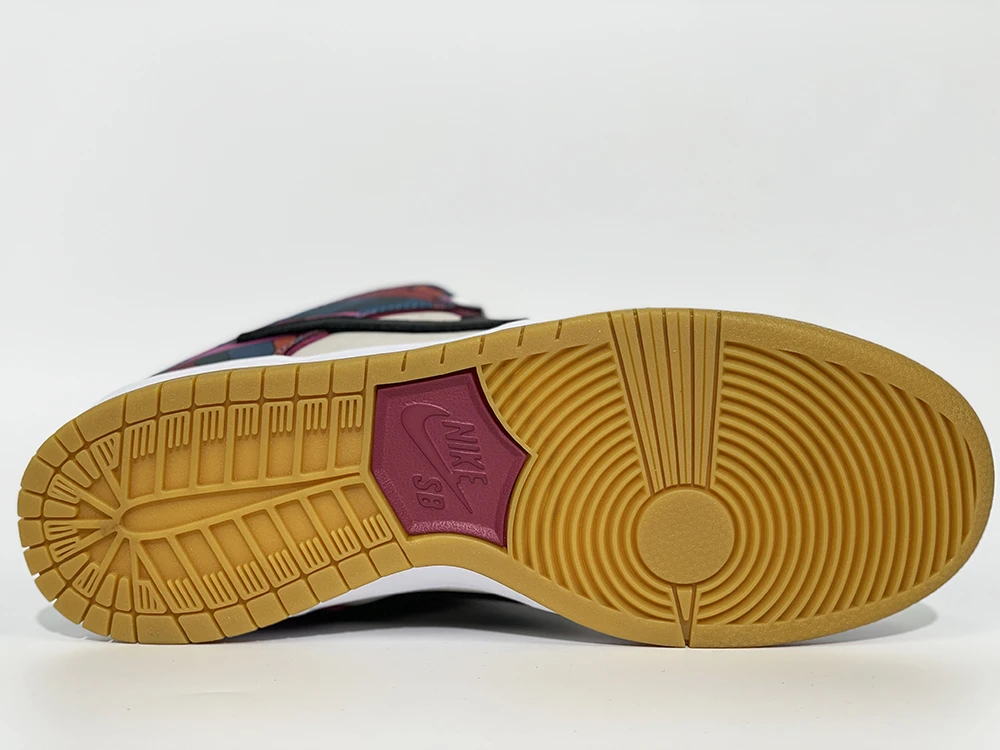 The Nike SB Dunk Low Pro Parra Abstract Art is a standout sneaker released in 2021, inspired by the Tokyo Summer Olympics. This model features a vibrant abstract print with textured overlays in blue, red, and pink hues that create a dynamic artistic look. The overlays contrast beautifully against a clean white leather upper, giving the shoe a bold yet refined appearance. Unique details include a smaller Nike swoosh on the side and an additional tiny swoosh near the toe, enhancing its distinctive style. The sneaker is finished with a classic gum outsole that offers excellent traction and a timeless aesthetic. The Nike SB Dunk Low Pro Parra Abstract Art perfectly blends art and performance, making it a must-have for collectors and sneaker enthusiasts alike. This shoe fits true to size and carries the signature flair of Dutch artist Parras abstract style, making it a unique addition to any sneaker rotation. The Nike SB Dunk Low Pro Parra Abstract Art is a vibrant celebration of creativity and sport.