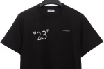 The Off White City Series 23 Slogan T Shirt is a standout piece from Off-White’s latest KIT capsule, inspired by global cities such as New York, Paris, Milan, Las Vegas, and Miami. This t-shirt features the number 23 and the respective citys name prominently on the front, paired with vibrant, city-inspired graphic designs on the back. Crafted in black, the shirt blends vintage style with contemporary streetwear aesthetics, making it a versatile staple for casual wear. The Off White City Series 23 Slogan T Shirt perfectly captures the brands signature urban edge and cultural references, ideal for fans of high-end street fashion looking to showcase city pride with a modern twist. This limited-edition piece is part of a capsule that also includes hoodies and New Era baseball caps, all designed to celebrate local and global cultures through bold graphics and clean design elements[1].