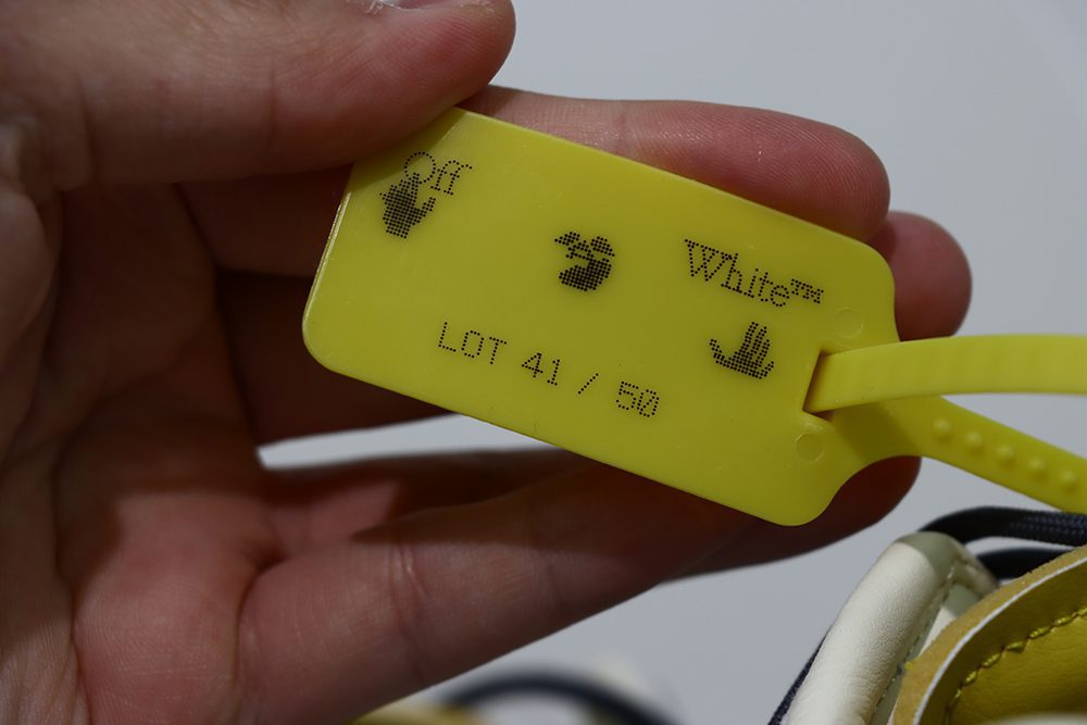 The Nike Dunk Low Off White Lot 41 is part of the limited Off-White Dunk series, known for its innovative design and high-quality craftsmanship. The sneaker combines smooth white leather with soft gray canvas, delivering a sophisticated yet casual look. The Off White Dunk 41 features subtle Off-White branding details, including the iconic orange zip tie and text accents, which add to its collectible value. The Dunk Low Off White Lot 41 stands out with its unique material mix and color palette, making it a favorite among sneakerheads. This model maintains the classic Dunk Low silhouette while incorporating modern design cues typical of Off-White collaborations. Whether styled for casual wear or as a statement piece, the Dunk Low Off White Lot 41 offers both comfort and style. Its limited release and distinctive look make it a sought-after sneaker in the Off-White Dunk lineup.