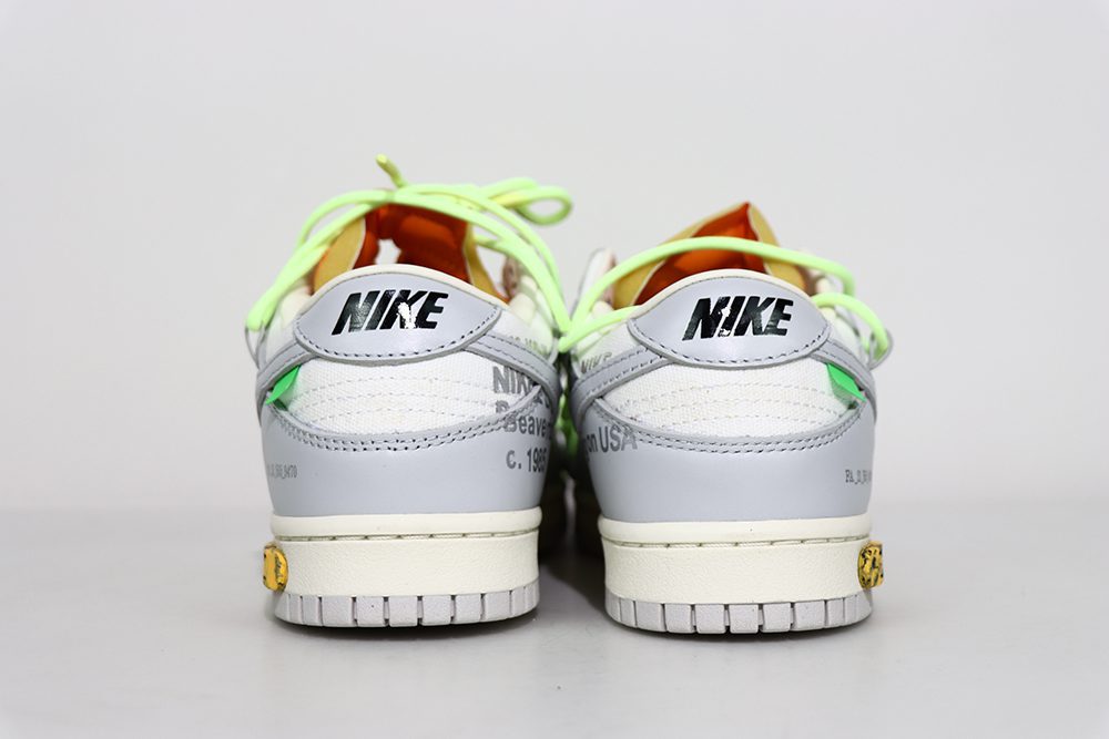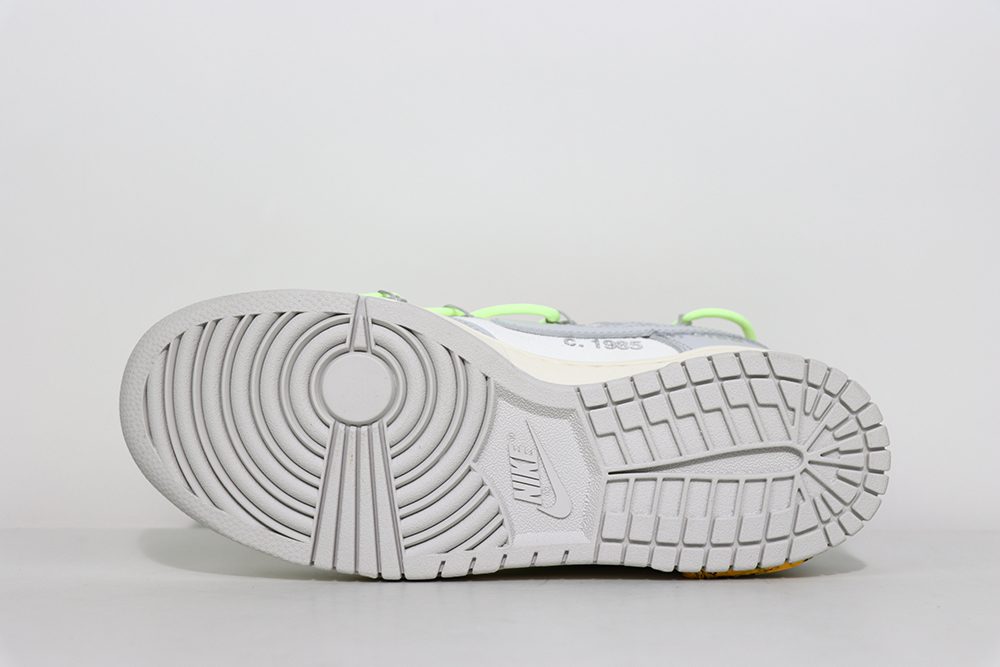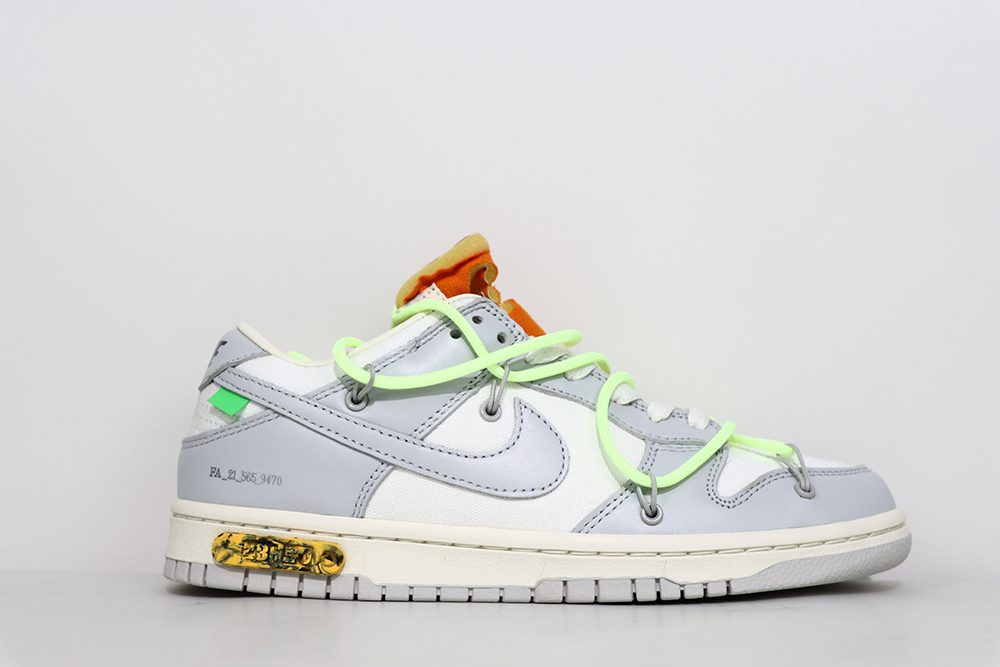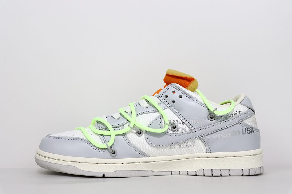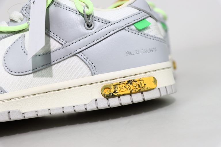 The Nike Dunk Low Off-White Lot 43 is a refined iteration of the iconic Dunk silhouette, celebrated for its minimalist yet sophisticated design. This sneaker features a premium white leather upper accented by light grey suede overlays, creating a balanced and stylish appearance. The Sail-colored midsole with vulcanized cupsole construction adds durability and comfort, resting on a gray rubber outsole for enhanced traction. A distinctive multicolored “43 of 50” patch highlights the shoe’s exclusivity, making the lot 43 off white dunk a prized collectible. The Nike Dunk Low Off White Lot 43 seamlessly integrates classic Dunk elements with modern materials and craftsmanship. Its understated color palette and limited release make it a versatile choice for both casual wear and sneaker collections. Enthusiasts appreciate the subtle branding and quality construction that define the dunk lot 43, ensuring it stands out in the crowded sneaker market.