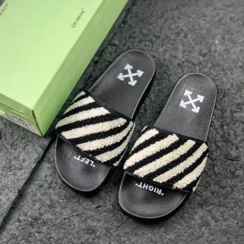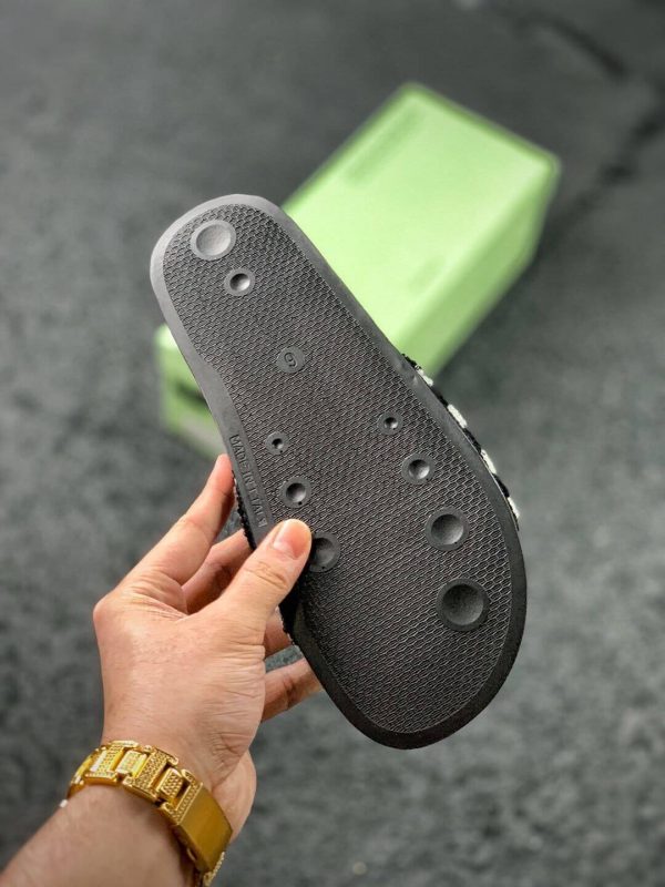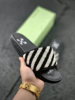 The Off-White Flyknit Stripe Slider is a stylish and comfortable option for those seeking a blend of luxury and streetwear. Designed with Off-White’s iconic diagonal stripes, the slider features a textured flyknit upper that offers breathability and a snug fit. The moulded footbed adds extra cushioning, making these sliders ideal for extended wear. Available in classic black and white colorways, the Off-white Flyknit Stripe Slider complements a variety of casual looks. Its lightweight construction and durable sole make it perfect for both indoor and outdoor use. Whether lounging at home or stepping out, the Off-white Flyknit Stripe Slider delivers a contemporary aesthetic with practical comfort, reflecting Virgil Abloh’s innovative design ethos.