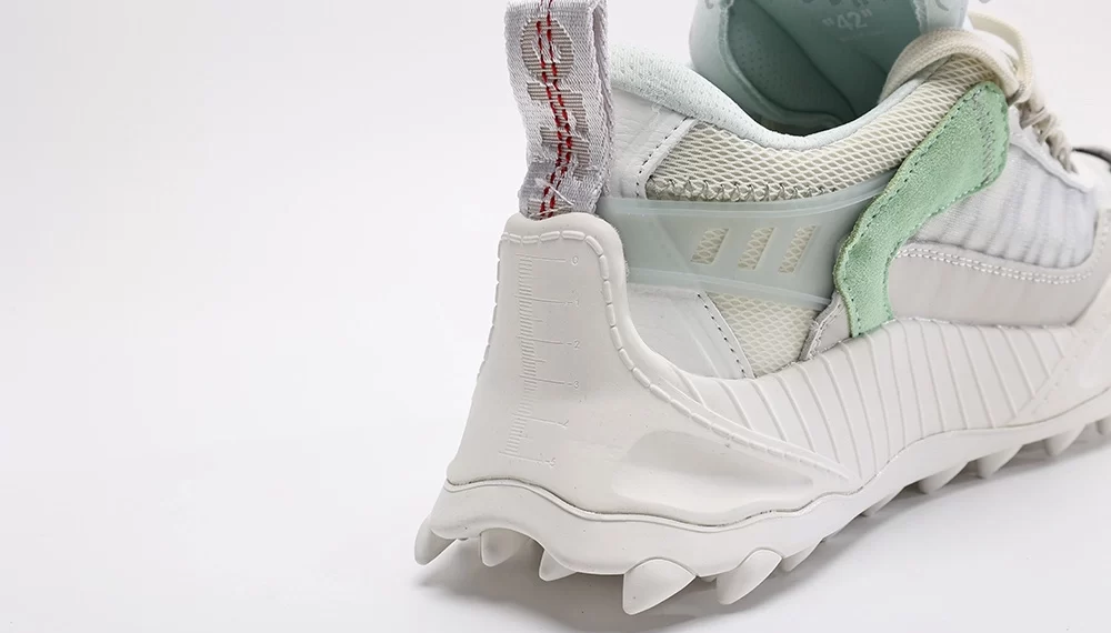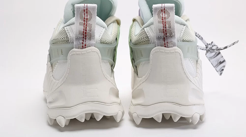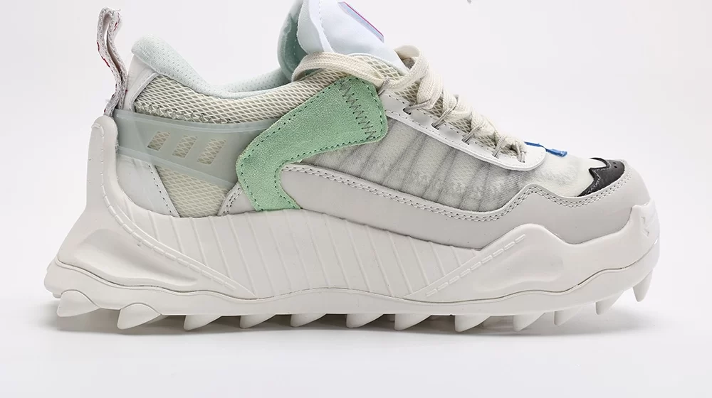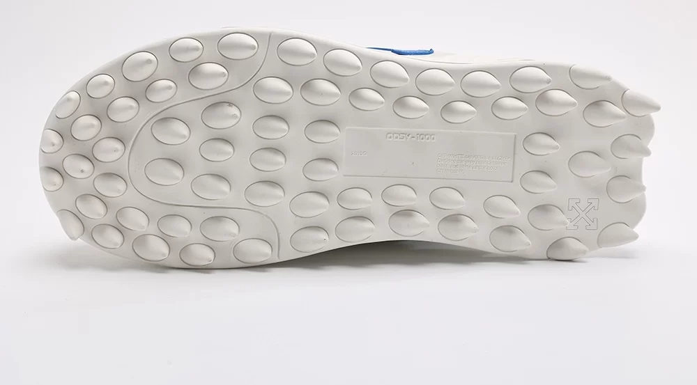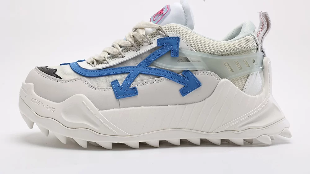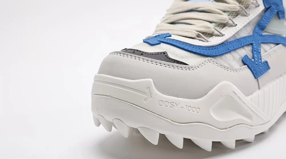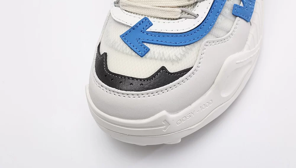 The Off-White ODSY-1000 series is known for its trail shoe inspiration, featuring a chunky midsole and rugged rubber-spiked outsole designed for off-road traction, though primarily worn as a fashion statement rather than for actual trail use. The design includes layered uppers combining materials like suede and mesh, with industrial heel tabs and bold branding elements such as the iconic red zip tie tags. Released in October 2019, the ODSY-1000 line reflects Virgil Abloh’s signature style, blending performance aesthetics with streetwear culture. The sneaker’s multi-layered construction and thick midsole provide a distinctive silhouette that stands out in any collection. While the original ODSY-1000 comes in various colorways, the Tech White variant offers a clean, versatile look that pairs well with diverse outfits. This sneaker is highly sought after for its unique design details and the prestige of the Off-White brand, making it a popular choice among collectors and fashion-forward consumers.