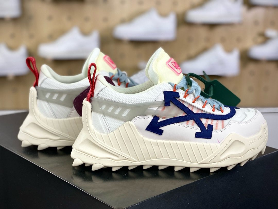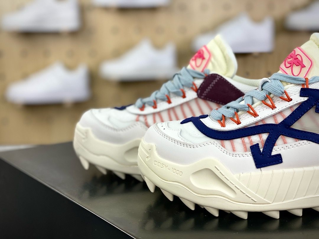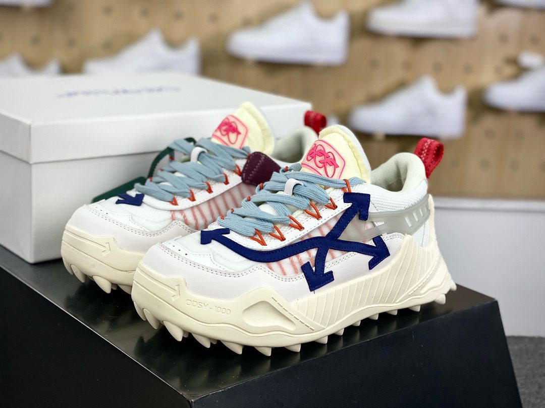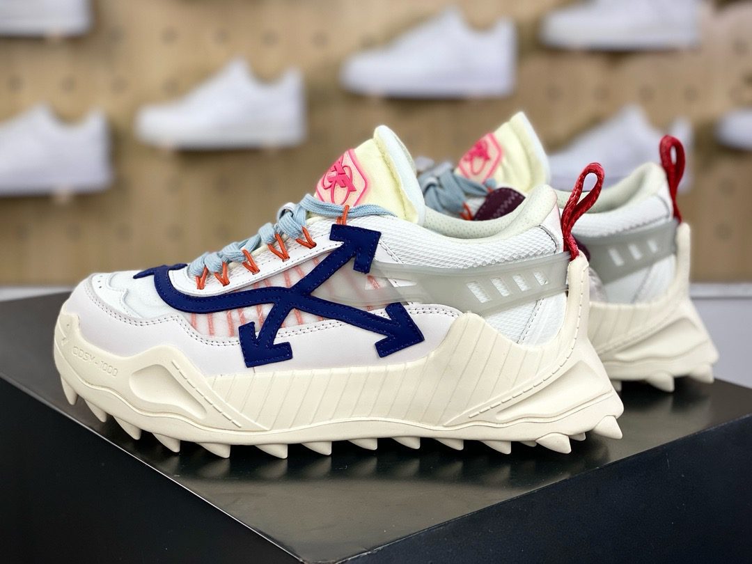 The Off White Odsy 1000 series is known for its multi-layered upper and thick midsole, which contribute to its bold silhouette and comfortable fit. These sneakers typically feature lace-up closures and a paneled design that enhances both aesthetics and functionality. The use of premium leather and mesh materials ensures breathability and durability, while the relaxed footbed provides all-day comfort. Off White’s signature details, such as the zip tie tag and asymmetrical sole patterns, add to the sneaker’s unique appeal. Available in various colorways including white multi and red multi-color, the Odsy 1000 caters to diverse style preferences. Authenticity is key with Off White sneakers, and careful attention to stitching, branding, and sole design helps distinguish genuine pairs from replicas. Whether styled with casual or streetwear outfits, the Odsy 1000 sneakers offer a fashionable edge that reflects Virgil Abloh’s innovative design philosophy.