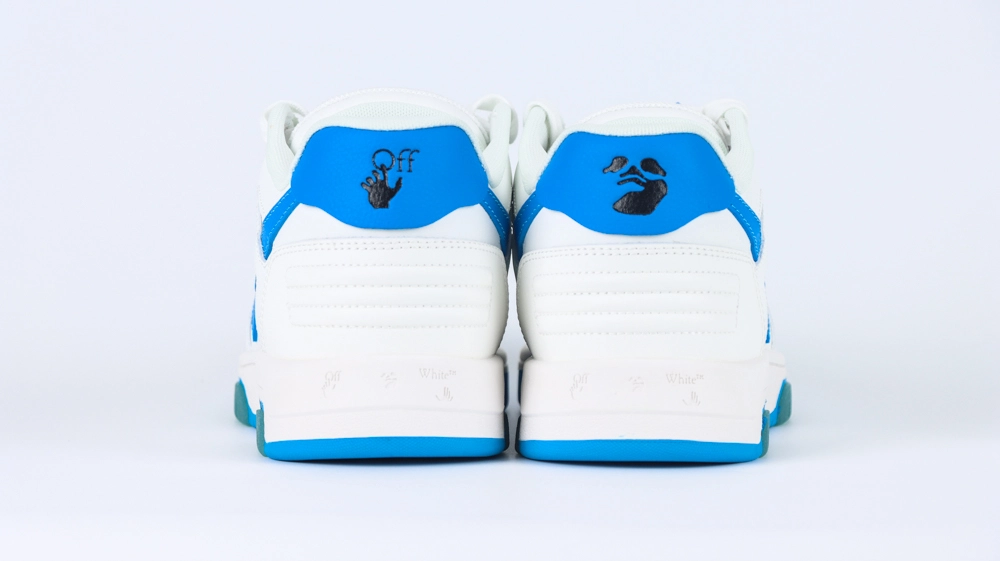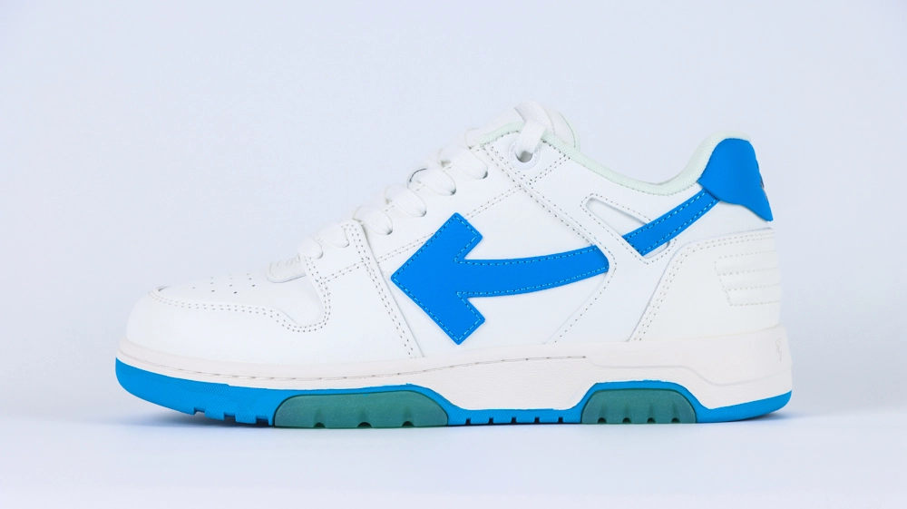 The Off White Out Of Office Low White Blue sneaker is a stylish blend of 90s streetwear and modern design, featuring a distinctive white and light blue colorway. Crafted primarily from premium calf leather, these sneakers showcase Off-Whites signature Arrow motif and the iconic Zip Tie tag, emphasizing the brands unique aesthetic. The panelled design and perforated toebox add both visual interest and breathability, while the flat rubber sole ensures comfort and durability. Perfect for casual wear, the Off White Out Of Office Low White Blue sneaker combines fashion and function seamlessly, making it a must-have for sneaker enthusiasts. This model highlights Off-Whites commitment to quality materials, including recycled polyester linings, enhancing sustainability without compromising style. Whether paired with streetwear or casual outfits, these sneakers stand out with their clean white and subtle blue accents, embodying the essence of Off-Whites innovative approach to footwear. The Off White Out Of Office Low White Blue sneaker is a versatile addition to any collection, blending heritage and contemporary trends effortlessly.