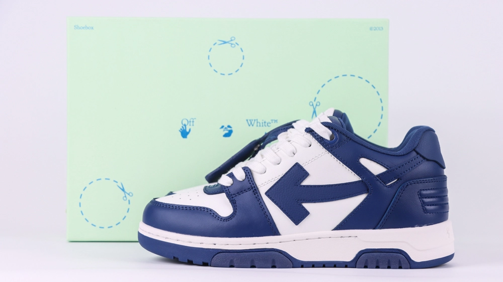 The Off White Out Of Office Low White Dark Blue sneakers blend a sleek, modern aesthetic with premium craftsmanship. Released on April 26, 2023, these sneakers feature a striking white and dark blue colorway that highlights Off-White’s signature sartorial stitching and design details. Crafted primarily from high-quality calf leather, the Out Of Office Low model offers a panelled design with the iconic Arrow motif and the brands distinctive Zip Tie tag. The sneakers are designed with comfort and style in mind, featuring a flat rubber sole and a perforated toebox for breathability. True to size, these Off White Out Of Office Low White Dark Blue shoes are perfect for those seeking a versatile yet fashionable sneaker that complements both casual and streetwear looks. Their unique blend of 90s tennis shoe influences and contemporary street style makes them a standout addition to any sneaker collection. The Off White Out Of Office Low White Dark Blue is a must-have for fans of the brand and sneaker enthusiasts alike.
