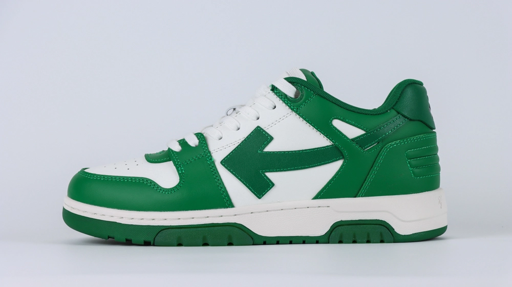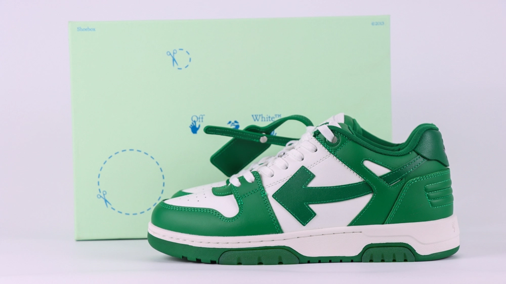 The off-white out of office low ‘white green’ sneaker draws inspiration from classic basketball and running shoes of the 1980s, merging retro elements with contemporary design. Crafted primarily from leather, this model features a round toe and rubber sole, ensuring durability and comfort for everyday wear. Released in late 2020, the off-white out of office low ‘white green’ has become a staple in Off-White’s footwear lineup, appreciated for its clean white base accented by vibrant green details. The lacing system is straightforward yet functional, complemented by the brand’s signature zip-stone and printed shoelaces that emphasize its street style credentials. This sneaker is versatile enough to pair with various outfits, from casual jeans to athleisure wear, making the off-white out of office low ‘white green’ a practical and fashionable addition to any collection.