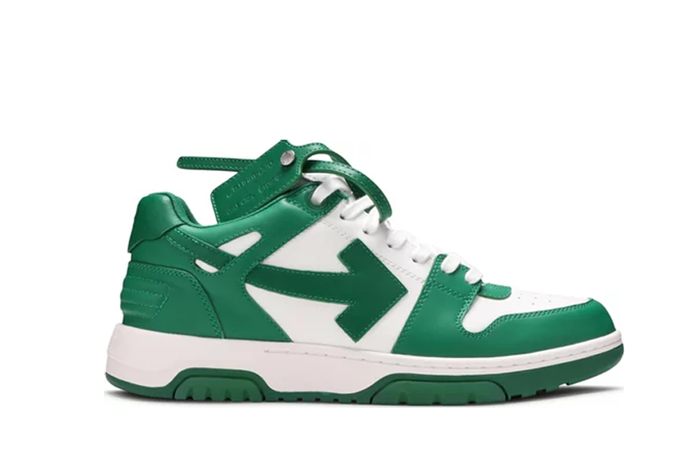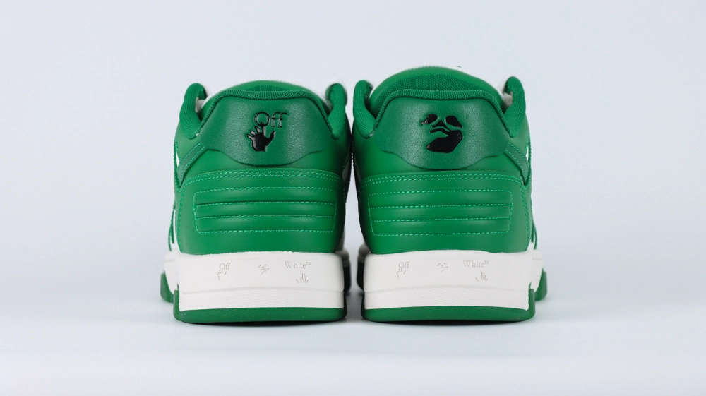 The Off White Out of Office Low White Green sneaker is a stylish blend of premium white leather with fresh green accents, creating a modern yet versatile look. This sneaker features a white base complemented by green overlays on the swoosh and midsole, offering a subtle pop of color that enhances its streetwear appeal. The design includes signature Off-White details such as the zip-tie tag and the iconic “Shoelaces” text on the laces, adding to its distinctive aesthetic. The plush tongue and soft laces provide comfort, while the off-white cream edging around the sole adds a rustic, aged effect that protects the white leather and adds dimension. Perfect for casual wear, the Off White Out of Office Low White Green sneaker balances sporty inspiration with trendy style, making it a sought-after choice for sneaker enthusiasts.