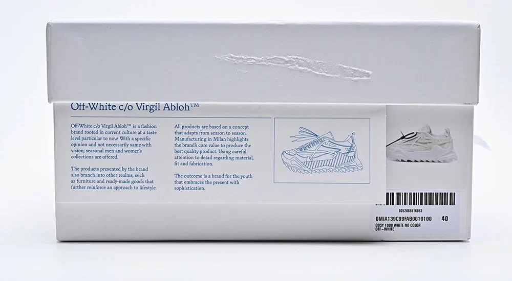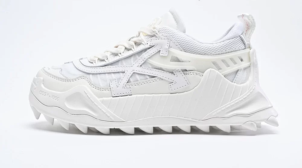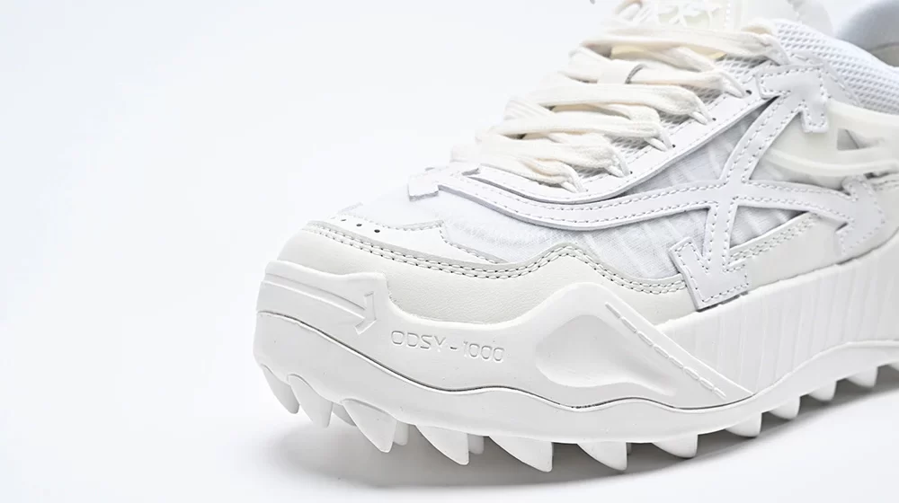 The Off White WMNS Odsy 1000 Low White sneaker is a standout model from Off-White, blending running spikes, hiking boots, and minimalist low-top aesthetics into one unique design. Featuring a mesh and suede upper in clean white tones, this sneaker sits atop a chunky cleated sole that offers both style and durability. Signature Off-White details include the iconic industrial belt heel tab, metric system measurements on the heel, and the “SHOELACES” text on the laces, emphasizing the brand’s deconstructed design philosophy. The Off White WMNS Odsy 1000 Low White is perfect for those seeking a bold yet versatile sneaker that merges fashion with function. This model has gained attention for its innovative design and is a must-have for sneaker enthusiasts. Experience the fusion of streetwear and performance with the Off White WMNS Odsy 1000 Low White.