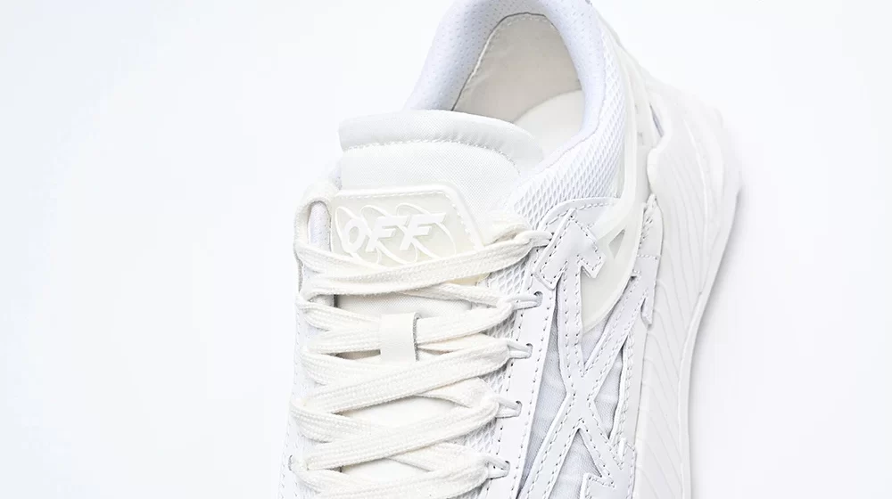 Off-White continues to push boundaries with the Odsy 1000 silhouette, which debuted in October 2019 as part of the brand’s exploration into hiker-style sneakers. The sneaker’s design incorporates industrial and technical elements, such as a partially translucent upper and a bright orange lacing system reminiscent of Virgil Abloh’s collaborations with Nike. The chunky sole unit is not only visually striking but also functional, inspired by walking boots and running spikes. The sneaker’s layered construction uses a mix of leather, mesh, suede, and synthetic materials, creating a textured and dynamic look. Off-White’s signature cross-arrow motif and debossed branding on the toe add to the shoe’s distinctive appeal. This model is available in various colorways, with the white version offering a clean, versatile option for women’s wardrobes. The Odsy 1000 balances avant-garde design with everyday wearability, making it a popular choice among fashion-forward consumers.