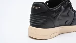 Off-White’s Out Of Office sneakers in black and white are crafted with meticulous attention to detail, featuring a round toe and lace-up closure for a secure fit. The combination of leather and recycled polyester materials highlights the brand’s commitment to sustainability without compromising on style. The black rubber sole enhances durability and traction, making these sneakers suitable for various surfaces and activities. Designed for both men and women, the Out Of Office sneakers offer a contemporary aesthetic with subtle logo embossing and a distinctive black and white label detail. These sneakers are versatile enough to pair with casual jeans or more polished outfits, making them a staple for fashion-forward individuals. With their blend of comfort, quality materials, and iconic design, Off-White’s Out Of Office sneakers in black and white are a smart investment for those who appreciate luxury streetwear with an eco-conscious edge.