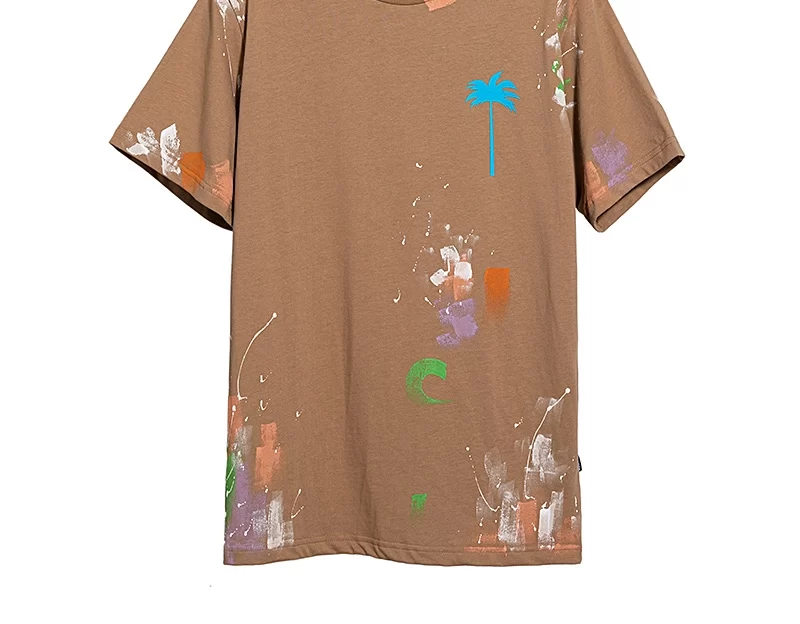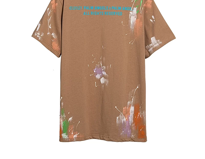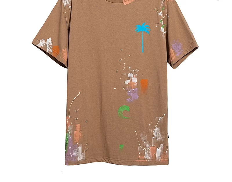 The Palm Angels men’s brown palm print paint splatter t shirt is a standout piece combining bold design with premium quality. Crafted from soft cotton, this t-shirt features a distinctive brown base adorned with an artistic palm print and paint splatter effect, creating a unique streetwear aesthetic. Ideal for those who appreciate edgy yet wearable fashion, the Palm Angels men’s brown palm print paint splatter t shirt offers both comfort and style. Its relaxed fit and eye-catching design make it perfect for casual outings or layering under jackets. This t-shirt embodies Palm Angels’ signature blend of luxury and urban culture, making it a must-have for contemporary wardrobes. The Palm Angels men’s brown palm print paint splatter t shirt is priced around $360, reflecting its designer status and quality craftsmanship[1].