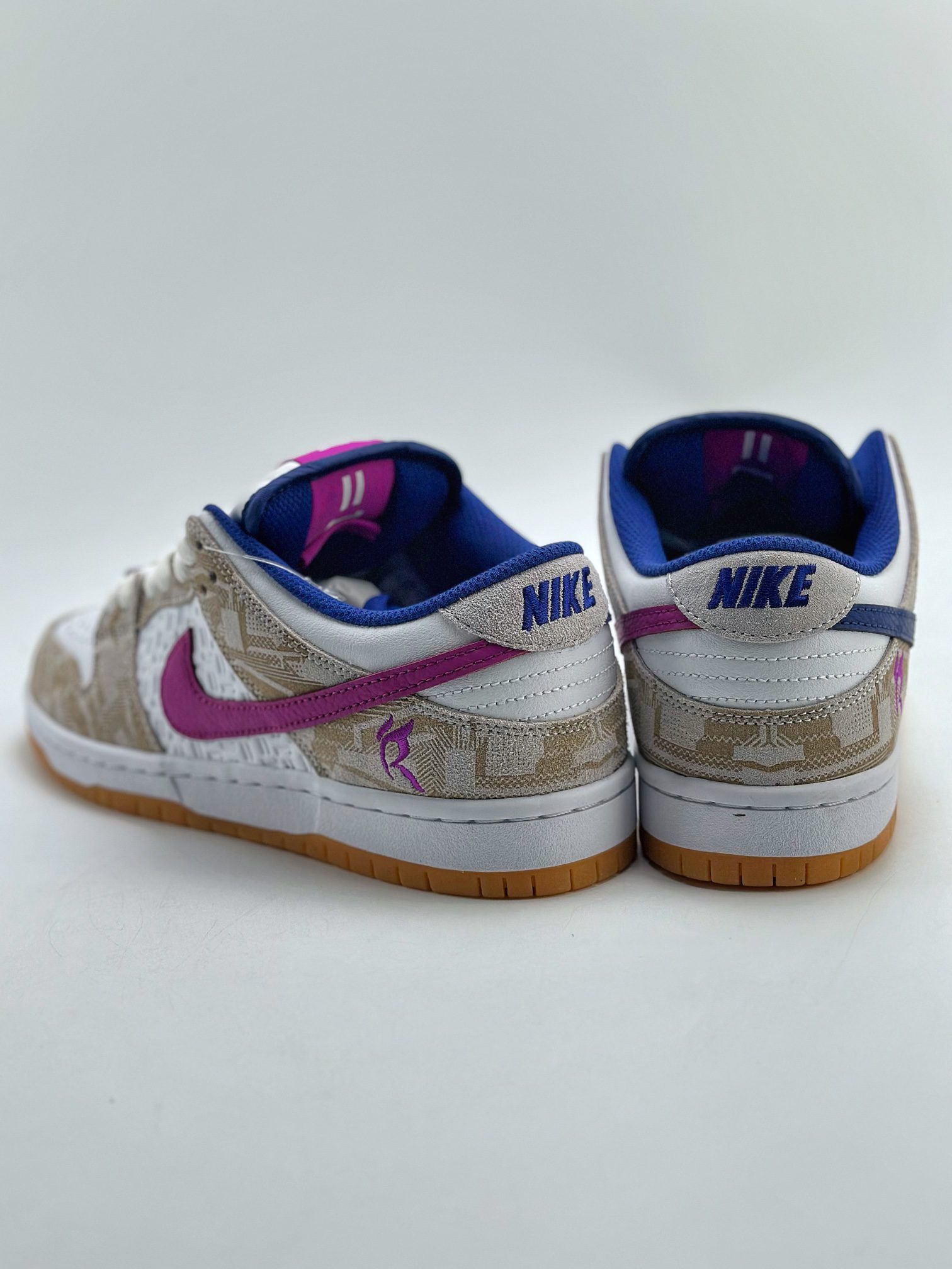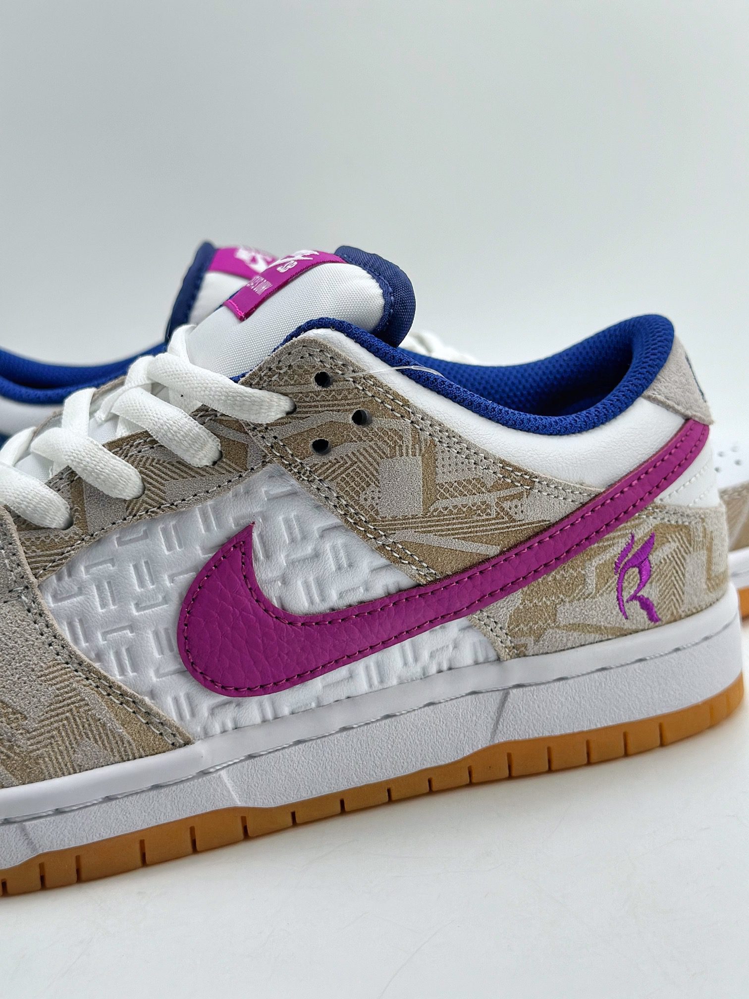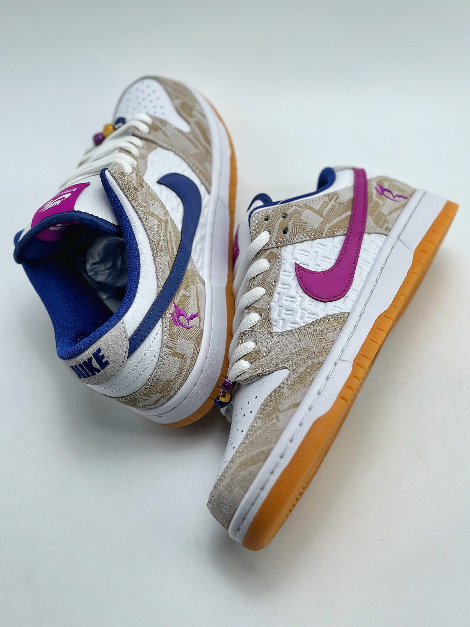 The Rayssa Leal x Dunk Low SB collaboration highlights the young skaters influence on the skateboarding world and sneaker culture. Known as the youngest street skater to win a silver medal at the 2020 Tokyo Olympics, Rayssa Leal brings her signature style to the Nike SB Dunk Low silhouette. The Rayssa Leal x Nike SB Dunk Low features a distinctive color palette of Deep Royal Blue, Vivid Purple, Pure Platinum, White, and Gum Yellow, creating a visually striking shoe. The design incorporates leather and textile materials, with Rayssas logo prominently displayed on the heel and sockliner. Unique accents like smiley face lace charms and matching purple Swoosh logos emphasize the sneakers playful personality. The Rayssa Leal x Dunk Low SB Deep Royal Vivid Purple colorway is especially notable for its vibrant hues and premium craftsmanship. Released in March 2024, this sneaker is priced around $125 USD and is available through select skate shops and Nike SNKRS. The Nike SB Rayssa Leal Dunk Low is celebrated for combining high performance with a bold, youthful aesthetic, making it a coveted piece for collectors and skaters.