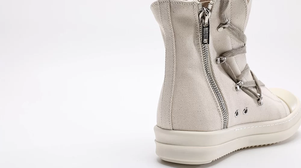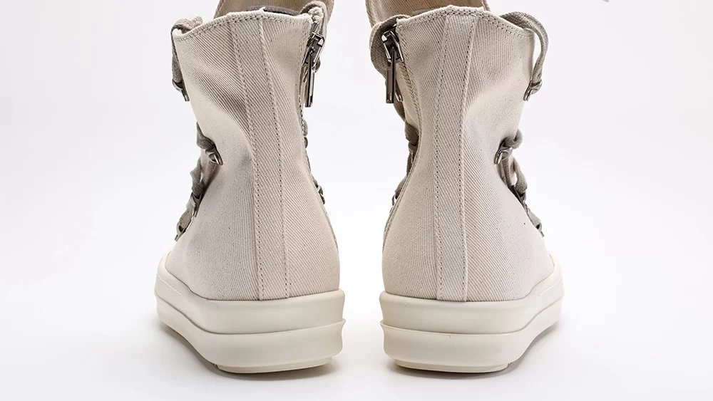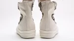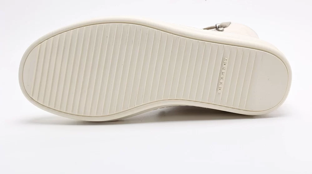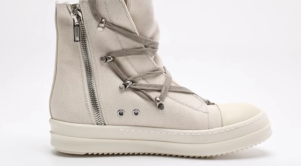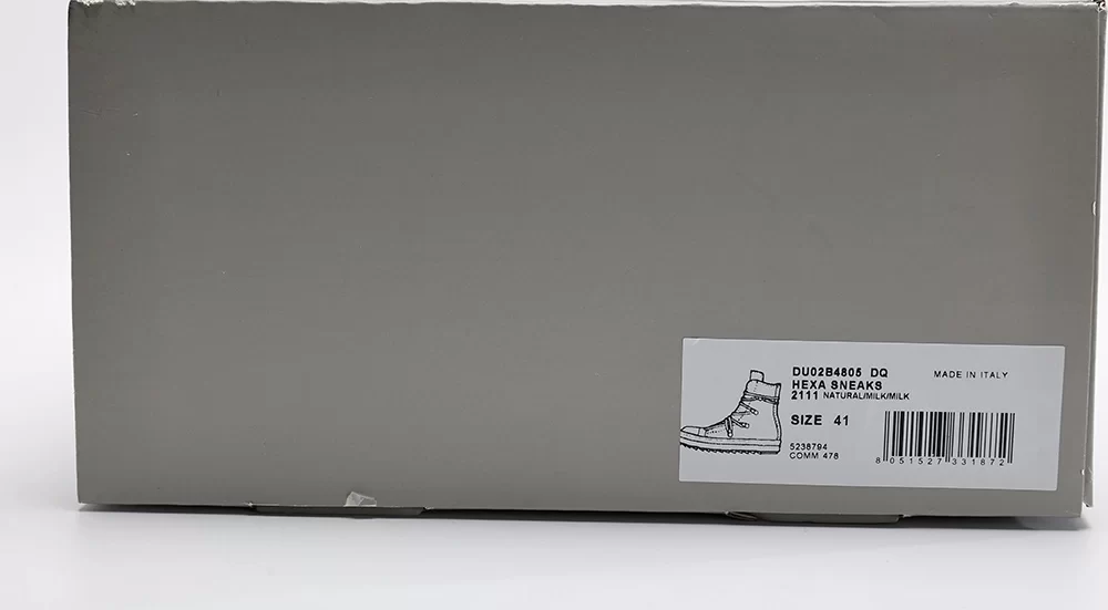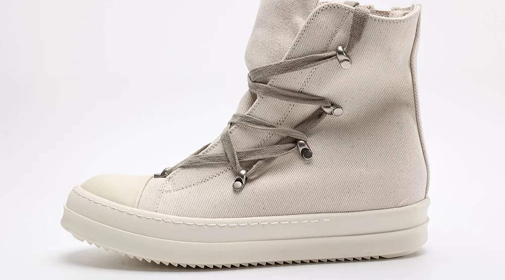 Rick Owens DRKSHDW sneakers are renowned for their innovative designs and premium materials, blending streetwear with high fashion. The Strobe Cotton Nylon Hexa High model stands out with its use of nylon uppers paired with soft sheepskin linings, providing both durability and comfort. The exclusive outsole design enhances traction and adds to the sneaker’s unique aesthetic. Available in the Pearl Milk colorway, this sneaker offers a muted palette that complements various outfits. Rick Owens’ DRKSHDW line often features recycled and sustainable materials, reflecting a commitment to eco-conscious fashion. Sizes typically range from European 36 to 44, catering to a broad audience. The high-top design not only supports the ankle but also adds a bold statement to any look. Collectors and fashion-forward individuals appreciate the blend of avant-garde style and practical wearability found in the Rick Owens DRKSHDW Strobe Cotton Nylon Hexa High Pearl Milk sneaker.