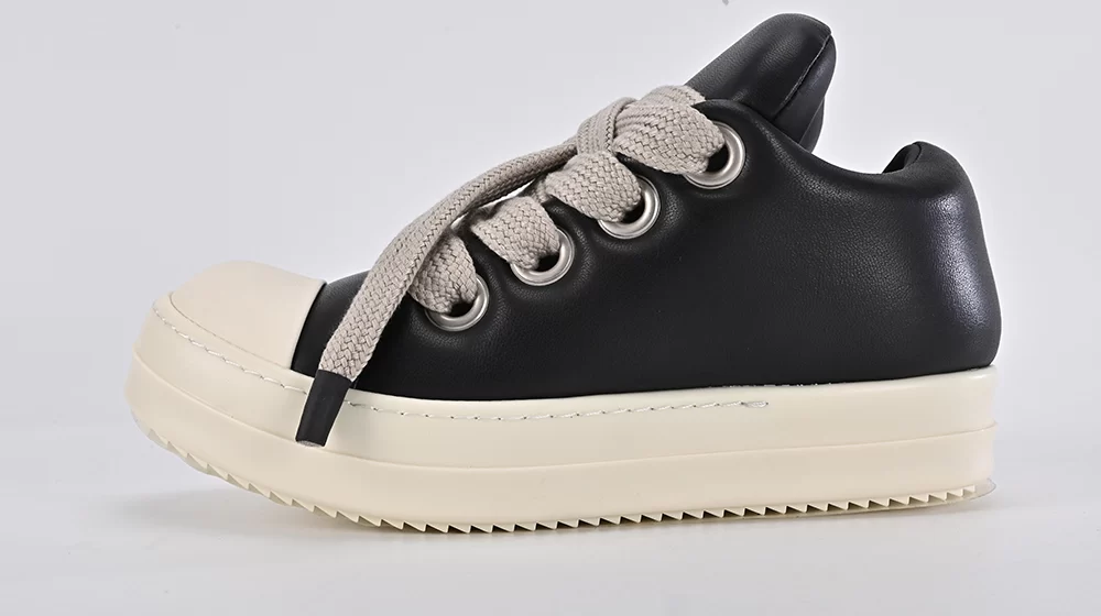 The Rick Owens EDFU Runway Low ‘Black Milk’ is celebrated for its unique blend of materials and design elements. The upper combines fabric imported calfskin and high mercerized deerskin, complemented by a soft sheepskin lining for enhanced comfort. This combination not only elevates the sneakers luxurious feel but also ensures breathability and durability. The nickname ‘Black Milk’ refers to the sneakers distinct black and milk-white colorway, which highlights the contrast stitching and sole design. The low-top design offers a sleek profile that fits comfortably under the ankle, making it versatile for various styles and occasions. Authenticity is guaranteed through strict verification processes, ensuring each pair meets Rick Owens high standards. Whether paired with casual or avant-garde outfits, the Rick Owens EDFU Runway Low ‘Black Milk’ stands out as a statement piece that merges fashion innovation with everyday wearability. Its edgy look and premium materials make it a coveted item among sneaker collectors and fashion enthusiasts alike.