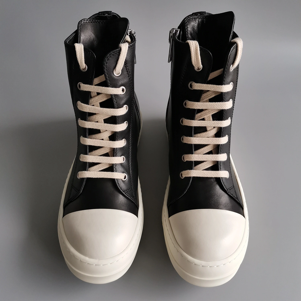 Rick Owens Edfu sneaker collection extends beyond just the runway, offering variations that maintain the brands edgy and experimental spirit. Notably, the Edfu Pentagram Stitch Nylon Sneakers feature a stitched pentagram on the outer ankle, adding a symbolic and gothic touch to the design. These sneakers maintain the practical elements of the Edfu line, including the zipper on the inside ankle and shark-tooth soles, ensuring comfort and ease of wear. The use of tough reverse leather in exclusive seasonal colors like BLOOD further enhances the sneakers appeal, combining durability with striking aesthetics. Rick Owens consistently reduces hardware and visible closures to emphasize clean lines and exaggerated shapes, creating footwear that teases traditional fashion norms. The Edfu sneakers are designed to complement the broader SS23 collection, which includes oversized bodysuits, sheer fabrics, and architectural tailoring, reflecting a cohesive vision of modern luxury and rebellion. Whether styled on the runway or worn casually, the Rick Owens Edfu sneakers stand out as a bold statement of contemporary design innovation.