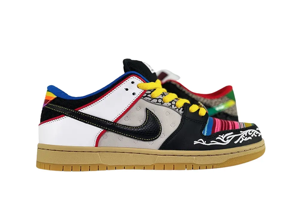 The Nike SB Dunk Low What The Paul is a standout sneaker celebrating pro skateboarder Paul Rodriguez’s extensive collaboration with Nike SB. This model features a unique patchwork design that combines elements from various iconic P-Rod colorways, blending mesh, leather, suede, patent leather, and woven fabrics into a vibrant, mismatched upper. Each shoe in the pair showcases different textures and colors, reflecting the rich history of Paul Rodriguez’s signature line. The sneaker also includes Paul Rodriguez’s signature on the tongue and a special metal deubr, adding exclusive details. Designed with skateboarding performance in mind, the SB Dunk Low What The Paul offers a padded tongue and Zoom Air cushioning for comfort and support. This makes it not only a collector’s item but also a functional skate shoe. For those searching for sb low what the paul for sale dunk, this model is a must-have that combines style, heritage, and performance seamlessly. The sb low what the paul for sale dunk remains highly sought after by sneaker enthusiasts and skaters alike.
