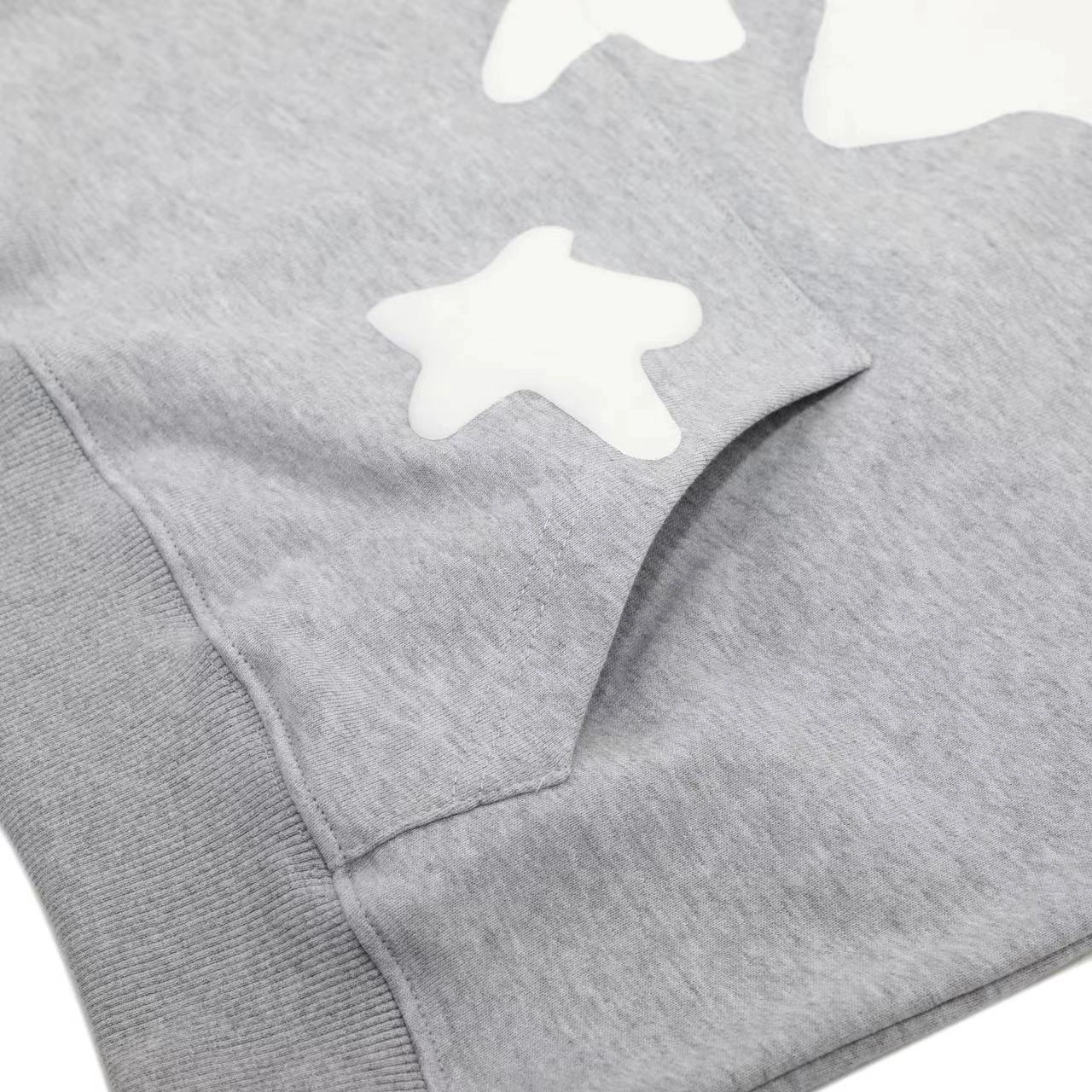 The SP5DER Beluga Star Hoodie is a standout piece known for its unique star print and bold logo design. Crafted from 100% high-quality fabric, this hoodie features a fixed hood, long sleeves, and a convenient kangaroo pocket, making it both stylish and functional. Available in vibrant yellow and classic grey colorways, the SP5DER Beluga Star Hoodie combines comfort with streetwear appeal. Its distinctive star print and logo on the front add a signature touch that fans of the brand appreciate. Whether you’re layering up for cooler days or making a fashion statement, the SP5DER Beluga Star Hoodie offers a perfect blend of quality and design. This hoodie is made with attention to detail, including a puff and discharge print combination for a textured look. The SP5DER Beluga Star Hoodie is a must-have for those seeking a trendy yet comfortable wardrobe staple.