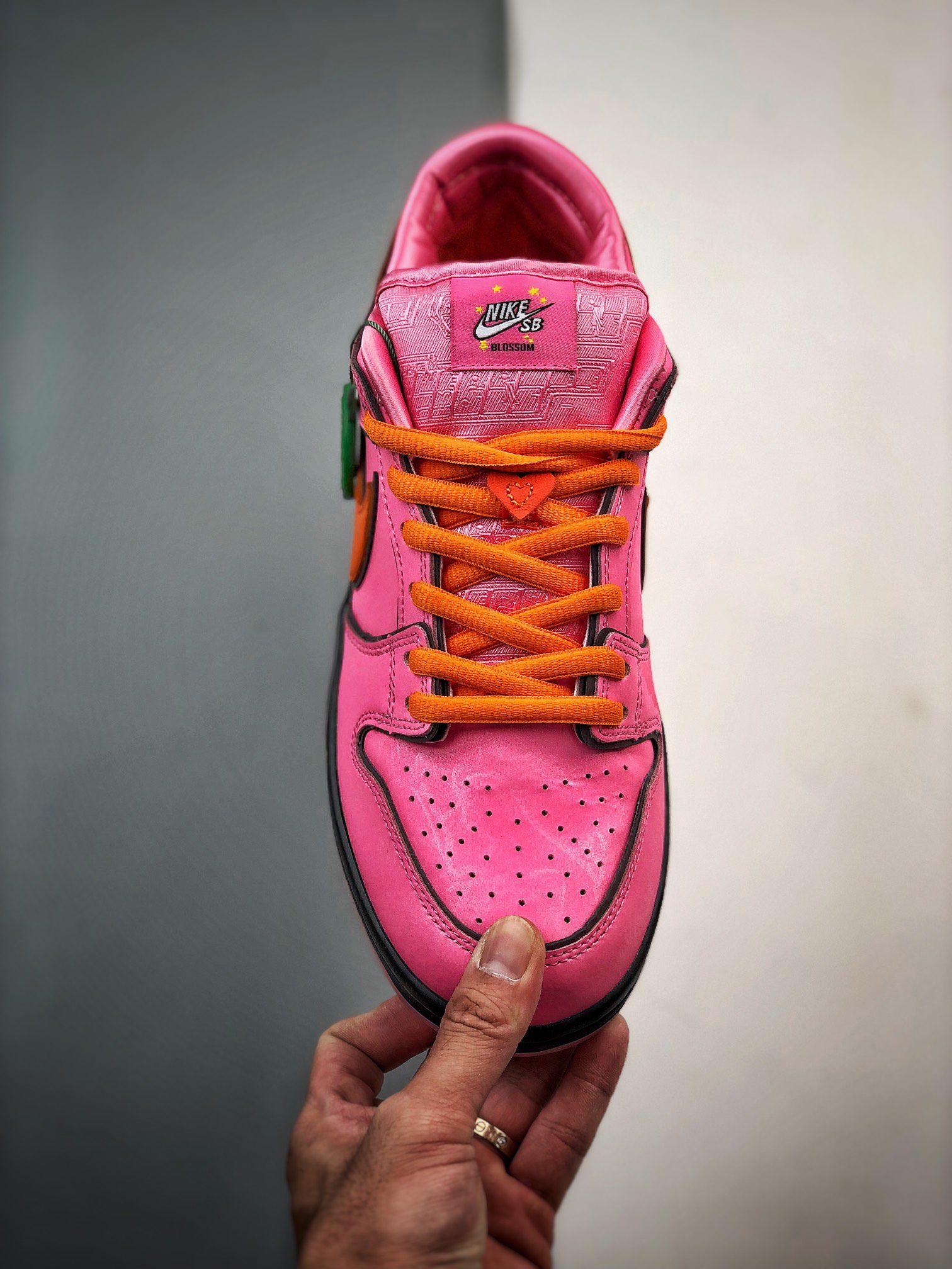 The Powerpuff Girls SB Dunk Low Blossom is a standout sneaker celebrating the iconic character Blossom from the beloved Cartoon Network series. Released as part of The Powerpuff Girls x Nike SB Dunk Low Pack in December 2023, this sneaker features a vibrant lotus pink colorway accented with orange details that reflect Blossoms signature look. Crafted with premium materials including leather and polyester, the shoe offers both style and durability. Unique design elements include an embroidered eye on the heel tab and thematic graphics on the tongue and insole, paying homage to the shows 25th anniversary. The Powerpuff Girls SB Dunk Low Blossom combines nostalgic appeal with modern sneaker culture, making it a must-have for fans and collectors alike. This model fits true to size and is available in family sizing, ensuring accessibility for all ages. The Powerpuff Girls SB Dunk Low Blossom perfectly blends playful design with Nike SBs skate heritage, capturing the spirit of the character in every detail.