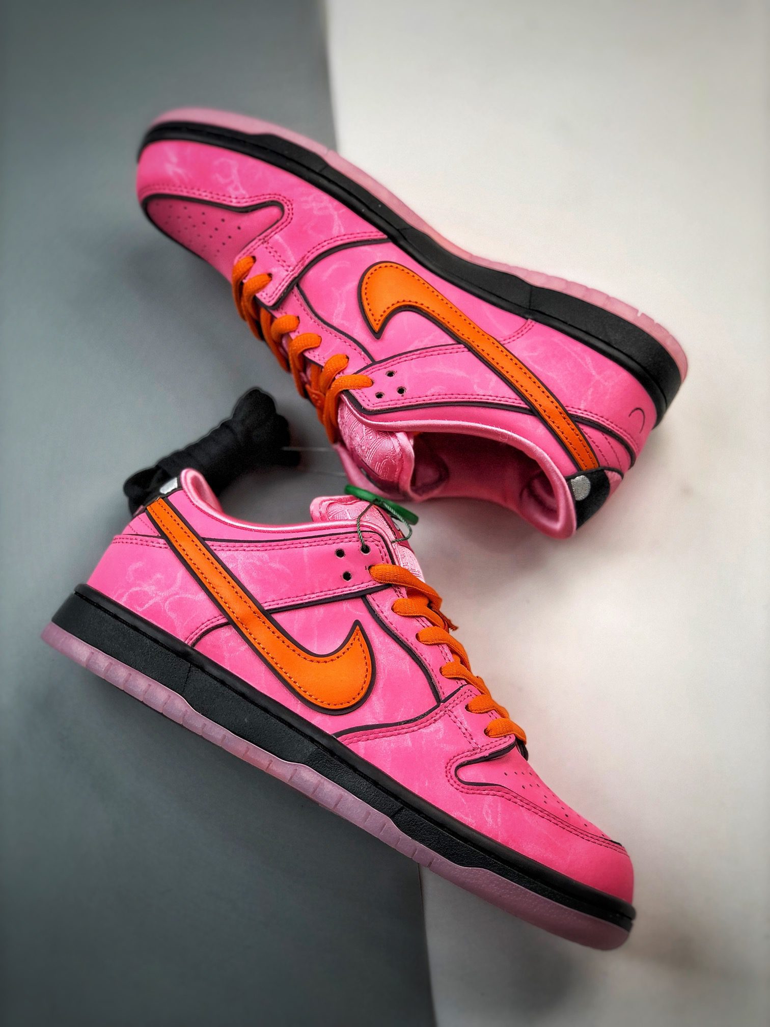 The Powerpuff Girls x Nike SB Dunk Low Blossom is part of a special collaboration that includes three distinct colorways representing Blossom, Bubbles, and Buttercup. The Powerpuff Girls x Dunk Low Pro SB QS ‘Blossom’ stands out with its lotus pink, digital pink, and medium soft pink hues, complemented by orange accents that mirror Blossoms hair. This sneaker features co-branded packaging and extra laces, enhancing its collectible appeal. The Powerpuff Girls x Dunk Low SB QS ‘Blossom’ was released on December 14, 2023, at select skate shops, followed by a wider release on Nike SNKRS. The Powerpuff Girls x Nike SB Dunk Low Blossom is designed with thematic details such as the embroidered eye on the heel and graphics referencing the shows characters and story elements. Retail pricing was set at $135 for mens sizes, with preschool and toddler sizes also available, making it a versatile option for fans of all ages. This collaboration celebrates the 25th anniversary of The Powerpuff Girls, combining nostalgic cartoon elements with Nike SBs skateboarding legacy to create a unique and stylish sneaker experience.