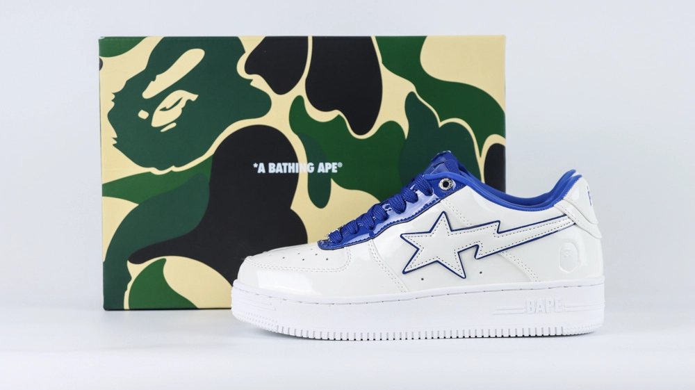 The white navy Bapesta #8 M1 reps offer a high-quality replica of the original Bapesta #8 M1 ‘White Navy’ sneakers, designed to closely match the authentic version in every detail. These reps feature a clean white and navy colorway with patent leather uppers, delivering a stylish and urban look. Crafted with precision, the white navy Bapesta #8 M1 reps maintain the iconic star logo and silhouette that BAPE fans appreciate. With full accessories included and double protection packaging, these reps provide an excellent alternative for those seeking the Bapesta style without the premium price. The white navy Bapesta #8 M1 reps are perfect for sneaker enthusiasts wanting a 1:1 replica that combines quality and design seamlessly.