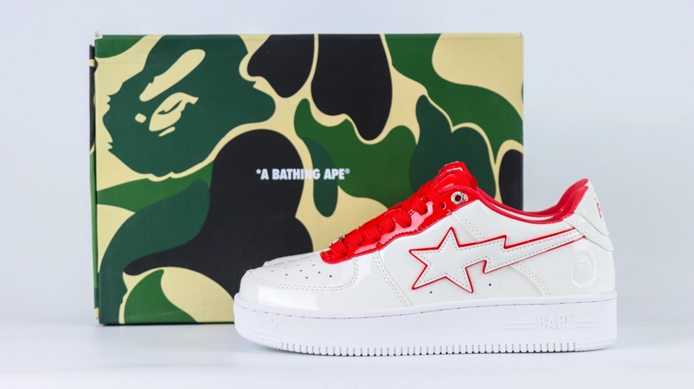 Bapesta #8 M1 reps in white red are a popular alternative for those who admire the original Bapesta #8 M1 but seek a more accessible option. The Bapesta line, introduced by BAPE in 2000, is a tribute to the Nike Air Force 1, featuring a distinctive star logo with a lightning bolt detail. The white red colorway stands out with its clean white patent leather base complemented by bold red overlays, creating a vibrant yet classic look. These reps replicate the premium materials and craftsmanship of the authentic pairs, including the patent leather upper and detailed stitching. Fans of streetwear appreciate the bapesta #8 m1 reps white red for their versatility and iconic design, which pairs well with various outfits. Whether youre a collector or a casual wearer, these reps provide a stylish and recognizable sneaker option that honors BAPEs legacy in urban fashion.