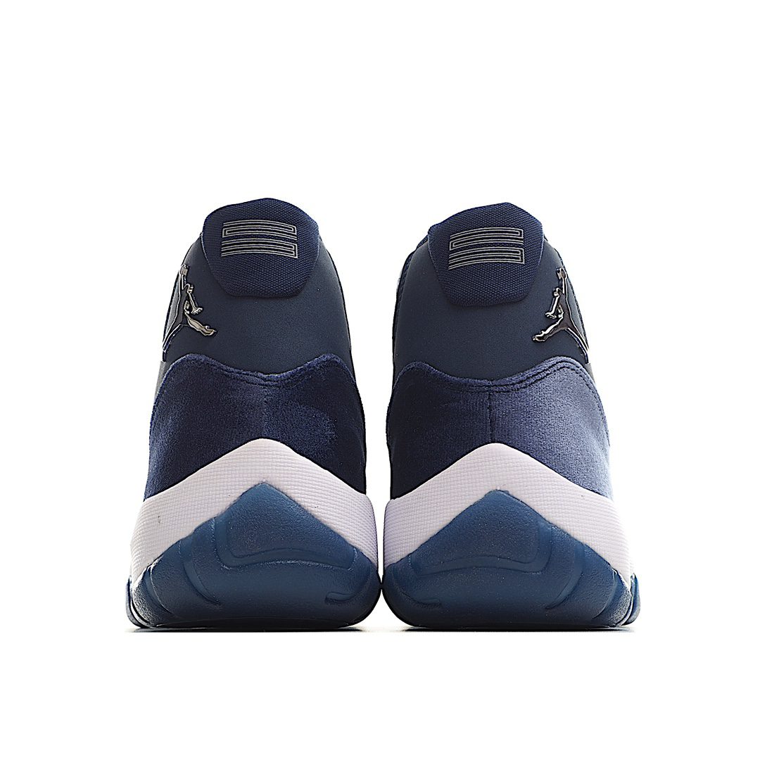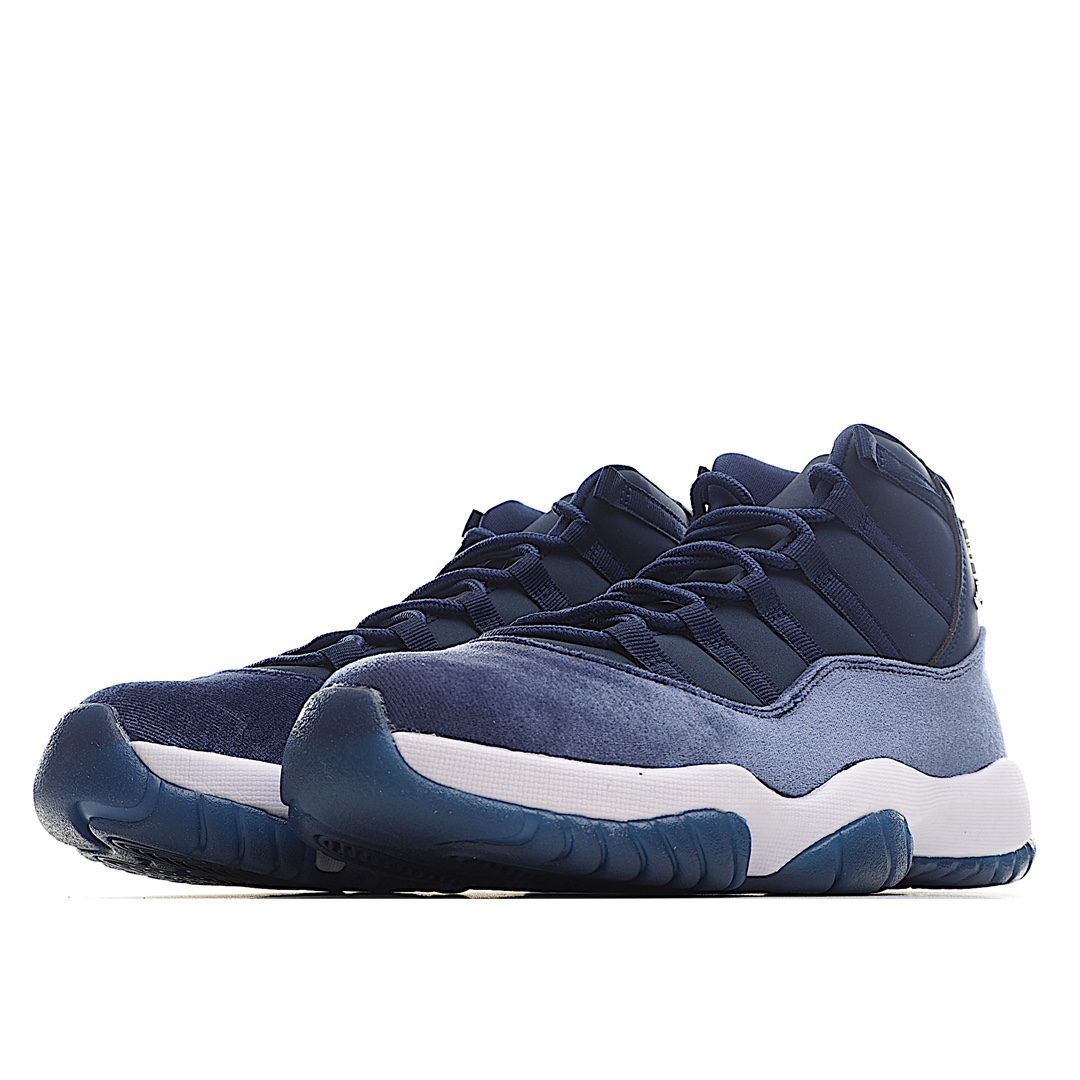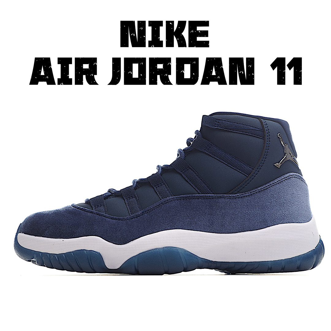 The **wmns air jordan 11 retro midnight navy velvet** is a luxurious take on the classic Air Jordan 11 silhouette, designed exclusively for women. Released in 2022, this sneaker features a rich midnight navy colorway with a unique velvet overlay replacing the traditional patent leather mudguard, giving it a plush and elegant finish. The upper combines smooth nubuck leather with velvet panels, complemented by a metallic Jumpman emblem and a cushioned ankle collar for comfort. The white midsole contrasts beautifully with the navy semi-translucent outsole, making the **wmns air jordan 11 retro midnight navy velvet** a standout in both style and performance. This model perfectly blends premium materials with iconic design elements, making it a must-have for sneaker enthusiasts and collectors alike. The **wmns air jordan 11 retro midnight navy velvet** offers a sophisticated yet sporty look that elevates any outfit.