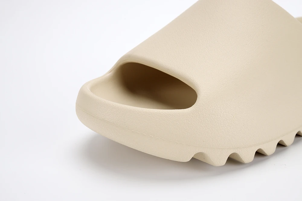 The Yeezy Slide Bone 2022 edition is a re-release of the original minimalist sandal, featuring an understated ivory hue that covers the entire silhouette in a monochromatic bone color. Crafted from injection-molded EVA foam, these slides are lightweight yet durable, designed to provide all-day comfort. The outsoles deep grooves enhance traction and impact protection, making them practical for various weather conditions. The design is simple but effective, with a wide strap and a plush footbed that cushions the foot. The 2022 restock has been praised for its improved fit and comfort, although sizing can be tricky, with some recommending going down a half or full size due to the deep footbed. The Yeezy Slide Bone also carries subtle adidas branding, keeping the look clean and versatile. This sandal is perfect for those seeking a stylish yet functional slide that works well in casual settings. The Matter version replica is noted for closely mimicking the original, offering an affordable alternative without compromising on comfort or style. Overall, the Yeezy Slide Bone remains a popular choice for fans of minimalist, high-quality footwear.